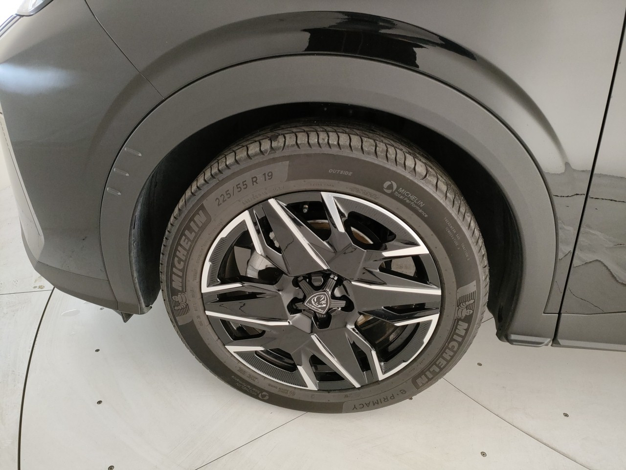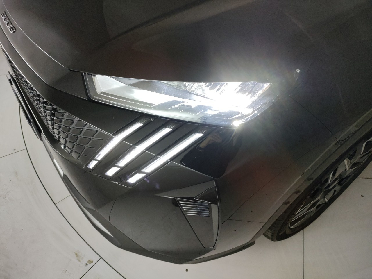 - Fascia nera lucida tra i proiettori anteriori con logo «3008»